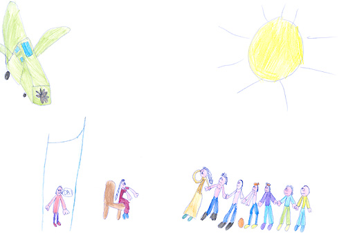 Una delle scene che a Cami piace di più è la partita di pallone con l’arrivo dell’aereo del tenente Carmelo La Rosa. Ecco come l’ha disegnato …