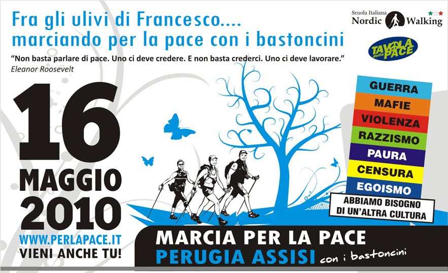 La Scuola Italiana Nordic Walking – in sinergia con la Tavola per la Pace, per la prima volta partecipa alla Marcia per la Pace Perugia – Assisi che si svolgerà domenica 16 maggio 2010.