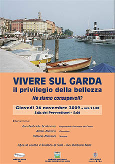 Lo ammetto, giovedì sera a Salò alla serata Vivere il Garda, il privilegio della bellezza, ne siamo consapevoli? sono andato più per onorare l’invito del mio amico Davide che per convinzione, infatti questo tipo di serate si rivelano spesso una “pizza” colossale di noiosi parrucconi che rievocano la solita “solfa” della bellezza del Garda nella letteratura, di Goethe, del Grand Tour, di D.H. Lawrence, come se sul Garda ci fossero passati solo loro negli ultimi secoli.
