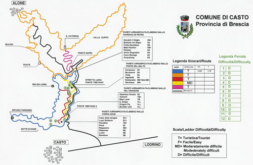 Arrivati in centro a Casto bisogna prendere la deviazione per Alone (c’è anche il cartello Rifugio Paradiso), avanti circa 1 km appena passato un ponticello c’è il parcheggio dove si può lasciare l’auto. Da lì inizia l’affascinante tratto di sentiero su passerelle dentro il fiume che dopo circa 1 km porta al Rifugio Paradiso, dove la domenica è possibile mangiare con 10 euro (pasta abbondante, salamina, dolce, caffè, acqua e vino inclusi), noi l’abbiamo fatto ed era tutto buono.