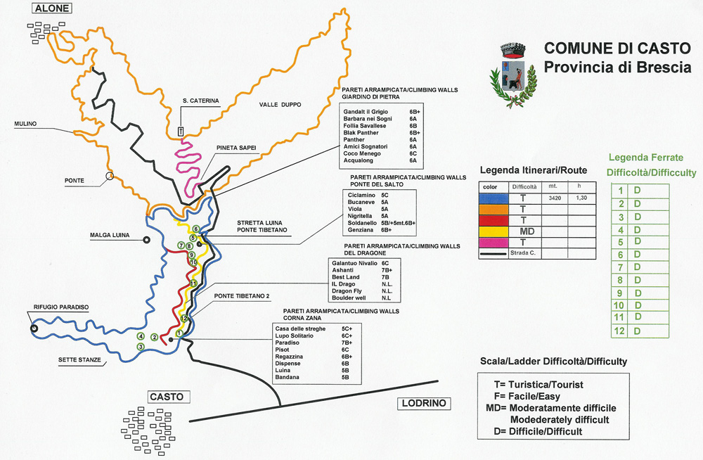 Parliamoci chiaro, Casto non è esattamente un “bijoux” di paese, disseminato com’è di industrie (d’altronde ha dato i natali a Luigi Lucchini, fondatore dell’omonimo gruppo industriale), e senza il racconto di DiBo non mi sarei mai sognato di andarci e per di più invitare amici a trascorrere una domenica passeggiando sui suoi sentieri. Invece il parco delle fucine è proprio carino (a parte la pioggia che ci ha accompagnato per la seconda parte) e per di più con passeggiate per tutti e per tutti i gusti, con anche ferrate e ponte tibetano per i più temerari.